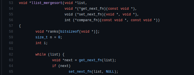 每一个技术上合理的软件程序背后,都可以找出几个核心的计算机科学理论。例如,Git 程序使用了图论、散列和许多基本的计算机科学算法。例如,以下是 Git 代码库中的合并排序实现: